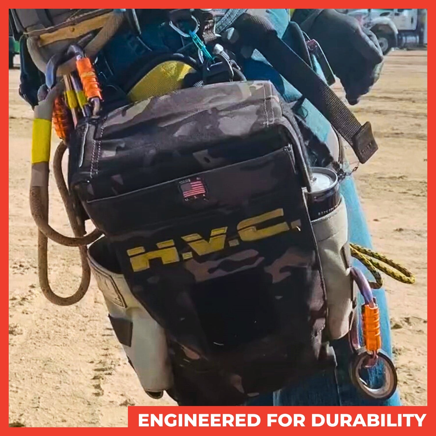 Our latest innovation features deeper pockets, versatile mounting options, and a 150 lb rating. This upgraded bag is expertly engineered for unmatched durability and adaptability in the field. Pair it with one of our stainless steel locking carabiners for even greater security and performance.