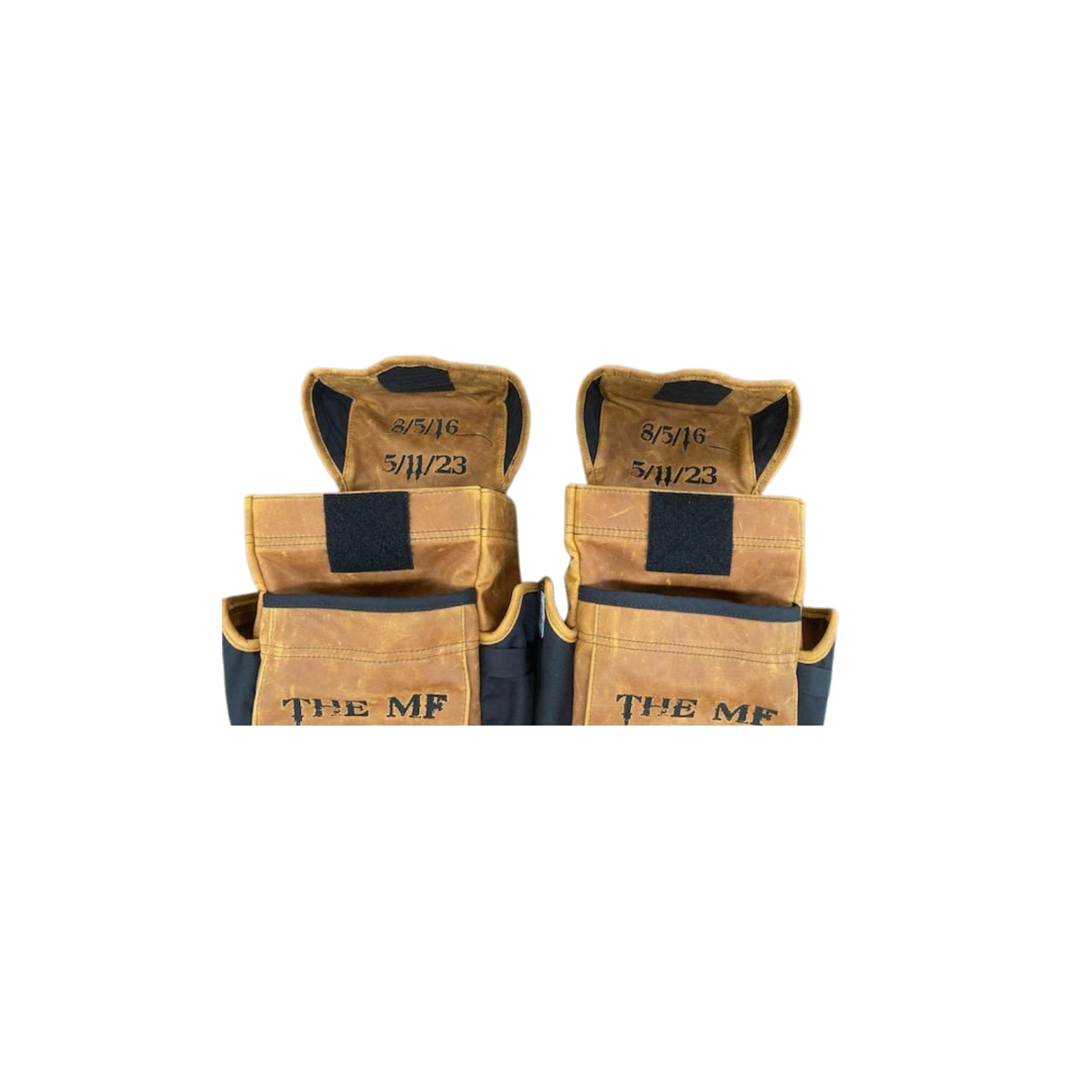 The bag features the main compartment for your sleeves and the front pocket for your rubber gloves. The 2 side pockets act as an easy location to store your work gloves when you transition to your rubbers or a multi meter. The bag is made from cordura and genuine leather. It features inward seam that makes the bag more streamline and less susceptible to snagging. For quick and easy storing hanging on your bucket each and every bag comes with a rated carabiner. With every one of our bags you get to customize your bag to your specific style. You get choice of color ways, choice of embroidery, and choice of what color your embroidery will be.